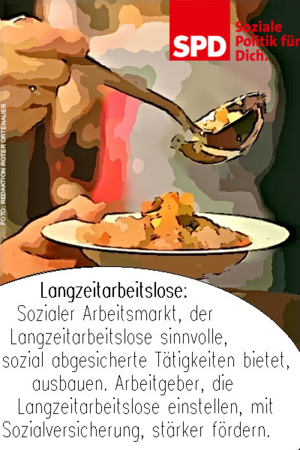 Sozialer Arbeitsmarkt, der Langzeitarbeitslose sinnvolle, sozial abgesicherte Tätigkeiten bietet, ausbauen. Arbeitgeber, die Langzeitarbeitslose einstellen - mit Sozialversicherung - stärker fördern.