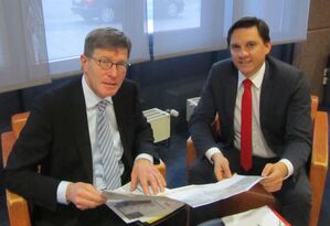 Die in Riegel derzeit schwierige Situation, dass einerseits die Gemeinde Riegel im Streckenabschnitt 8.1 und somit im Bereich der Kernforderung 3 liegt, über dessen Umsetzung der Projektbeirat bereits am 04.03.2013 entschieden hat, andererseits aber von der weiteren Beratung zur Kernforderung 2 (Autobahnparallele) im Streckenabschnitt 7.2 bis 8.0 abhängig ist, beurteilen Fechner und Fricke als unbefriedigend. Dies kann nach Fricke aber erst dann abgeändert werden, wenn die Entscheidung über die Trassenführung des 3. und 4. Gleis zwischen Offenburg und Riegel gefallen sei. Fechner sprach sodann an, dass die Entscheidung, wo die Trasse der beiden neuen Gleise der Rheintalbahn verläuft, noch dieses Jahr getroffen werden solle. Fricke stimmte dem zu und wünschte sich auch eine Entscheidung noch in diesem Jahr. Er bemühe sich derzeit in zahlreichen Gesprächen darum, eine Variante auszuloten, die allen Betroffenen gerecht wird und als Kompromisslösung dienen könne. Für die Autobahnparallele spricht aus Fechners Sicht, dass dort weniger Bürger vom Bahnlärm betroffen sind. Dort betroffene Gemeinden wie Kappel-Grafenhausen oder Riegel könne mit Lärmschutzmaßnahmen geholfen werden, so dass dort die Bürger keinem unzumutbaren Bahnlärm ausgesetzt sind. Die Lage des Flughafens unmittelbar an der A5 spreche zudem dafür, dort ein leistungsfähiges Verkehrszentrum aufzubauen.