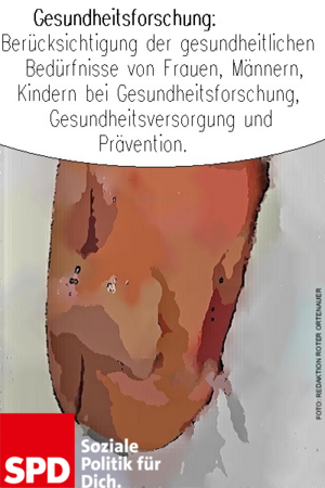 Berücksichtigung der gesundheitlichen Bedürfnisse von Frauen, Männern, Kindern bei Gesundheitsforschung und Prävention.