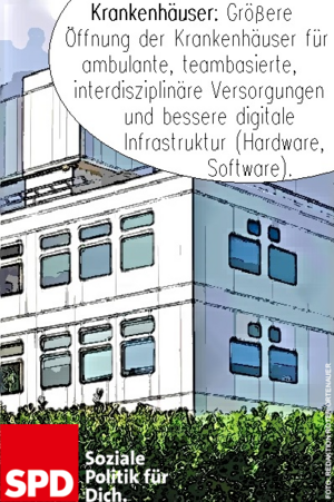 Größere Öffnung der Krankenhäuser für ambulante, teambasierte, interdisziplinäre Versorgungen und bessere digitale Infrastruktur (Hardware, Software).