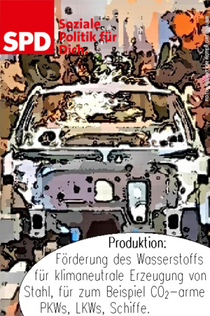 Förderung des Wasserstoffs für klimaneutrale Erzeugung von Stahl, für zum Beispiel CO2-arme PKWs, LKWs, Schiffe.